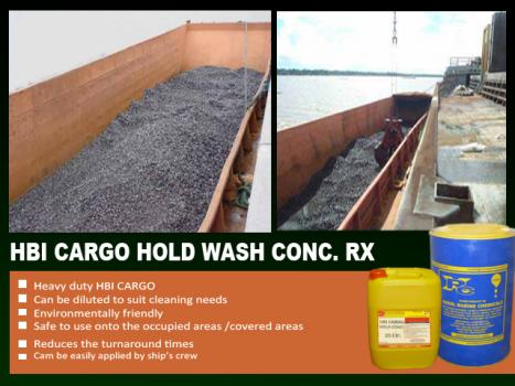 HBI CARGO Hold Wash Concentrate RX is a versatile all-purpose QUALITY marine cleaning solution. It can be used as a powerful stand-alone cleaner for HBI CARGO . it can be used as a powerful\ stand alone cleaner for HBI CARGO dust and deposition .