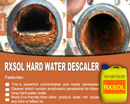 RXSOL Scale Remover effectively reacts with Silica deposits of Hard water, RXSOL silicates scales removal useful to clean Heat Exchangers, Condensers and Boiler Tubes.